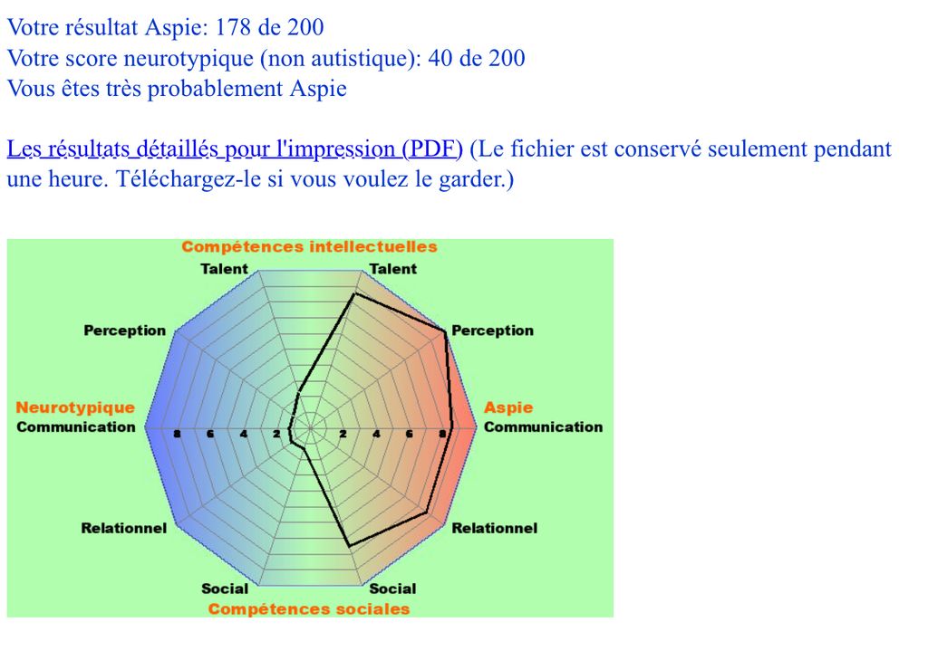 Votre score neurotypique (non autistique): 128 de 200