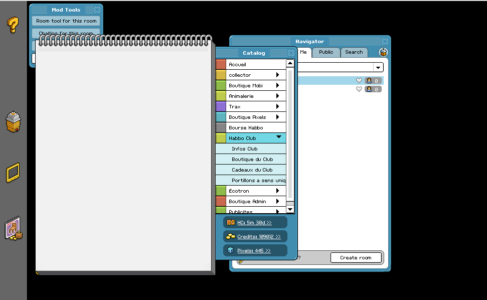 donc j'ai eux l'idée de faire un habbo retro en version 31 pour les khey, c'est le habbo de 2009 avec tout de fonctionnel, les plongeoir, les jeux battle-ball etc