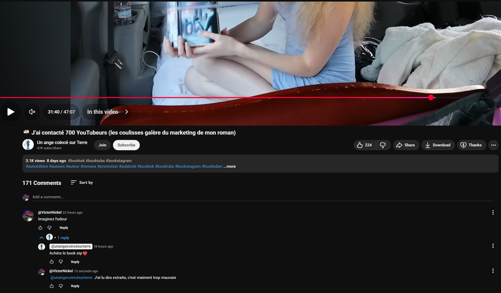 Les vidéos de ce gars sont d'une gênance extrème !! Je serais elle je lui demanderais d'arrêter d'associer son image à son livre. Son taux de simperie est tellement élevé qu'il dégoute tout le monde 🤢🤮