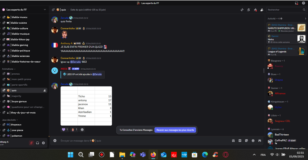 sur le serveur les experts du FF aujourd'hui le 27 juin 2025.