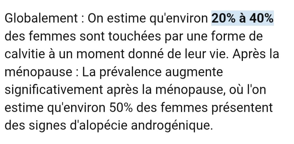 Et l'alopécie féminine touche environ 20 à 40 % des femmes