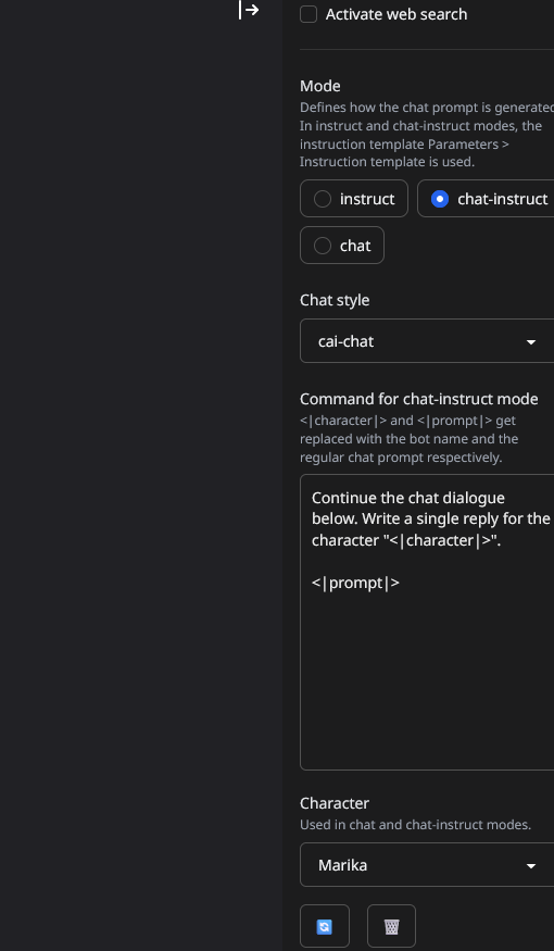 Dans le "Chat", passe en mode "Instruct-Chat" (et pas seulement Instruct):