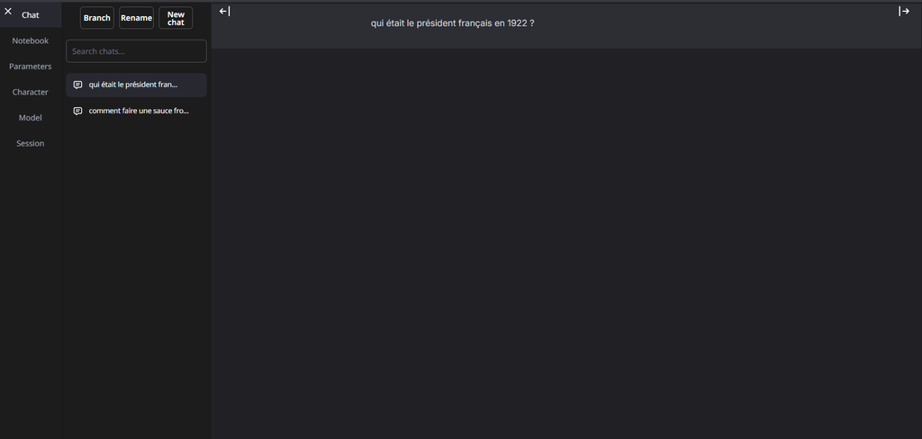 Et niveau modèles j'ai testé des versions quantized de mistral small 24b (le modèle entier rentre pas) et certains modèles supposément optimisés pour le rp style Mythomax, mais j'ai jamais rien eu du niveau de ce qu'on trouve en ligne, ce qui m'emmerde un peu parce-que l'ia non-locale j'aime pas trop ça