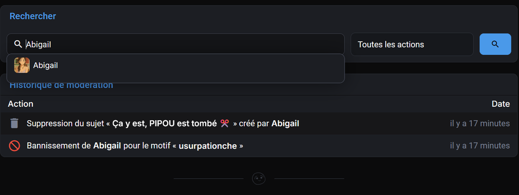Juste quelqu’un qui a fait un faux compte abigaiI ( le L étant un i majuscule )