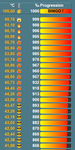 j'ai eu un mot à 47 degré, j'ai cherché le champ lexical du mot pour trouver des idées, mais ça reste froid