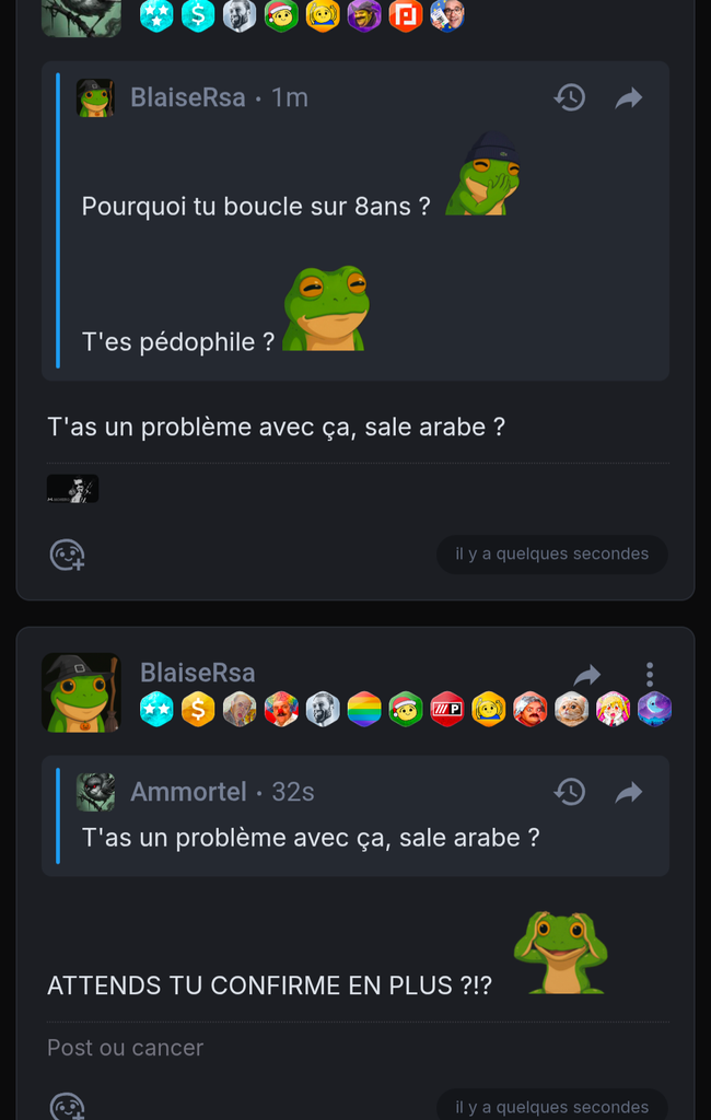https://onche.org/topic/1[...]til-noir#message_19212245 s'il te plaît ? J'avais écrit "Negre" pas "gentil noir"
