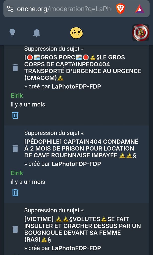 En soit, j'ai jamais été un poison pour le forum (juste un pyj qui insulte de temps et temps et envoie rarement du scato). Ce que je veux dire par là c'est que je ne suis pas plus méchant qu'un doxxeur, un harceleur, ou quelqu'un qui envoie de la pédo-pornographie par exemple...