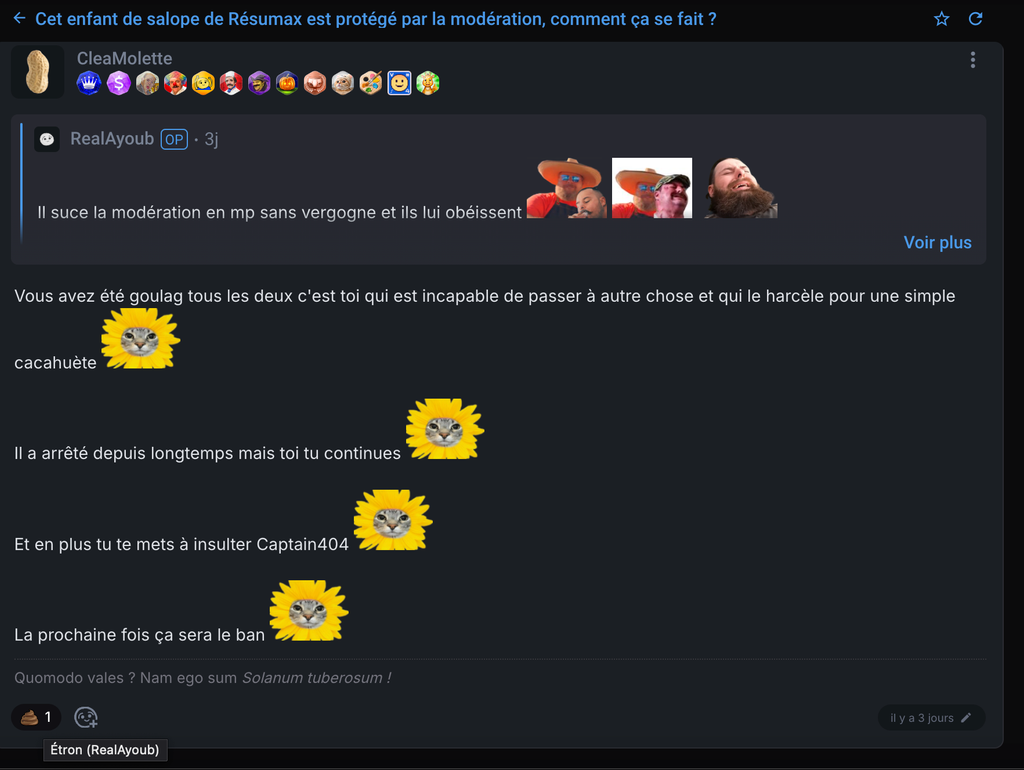 Ici dans ce pavé il insulte allégrement l admin