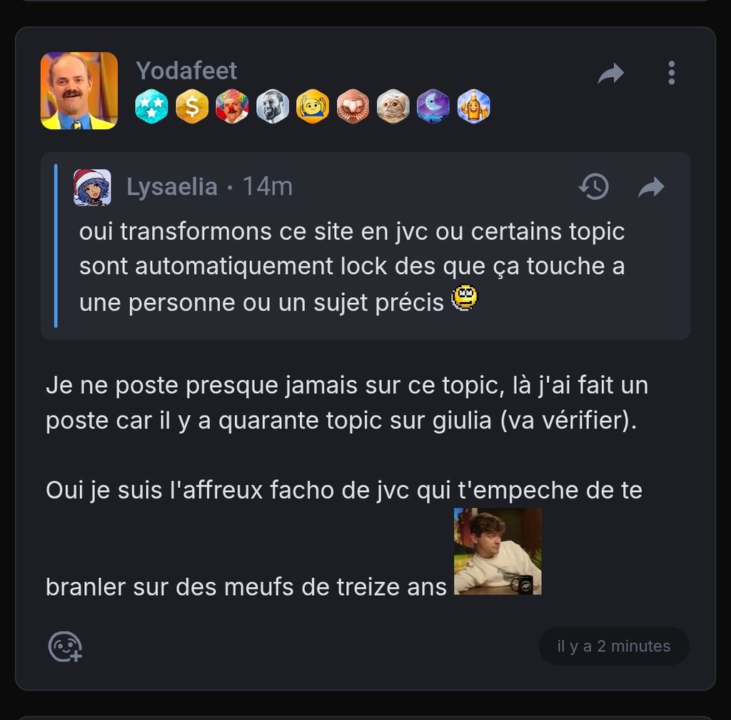 oui transformons ce site en jvc ou certains topic sont automatiquement lock des que ça touche a une personne ou un sujet précis