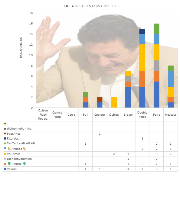 7ème : TenTenLe AN AN AN déchiré par Valium avec Brelan de 4 Hauteur 10 contre Paire de Quatre Hauteur Roi à l'issue de la manche n°25