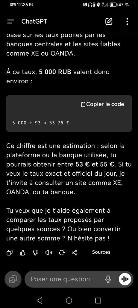 Un billet de 5000 roubles = environ 50euros , 54 euros même