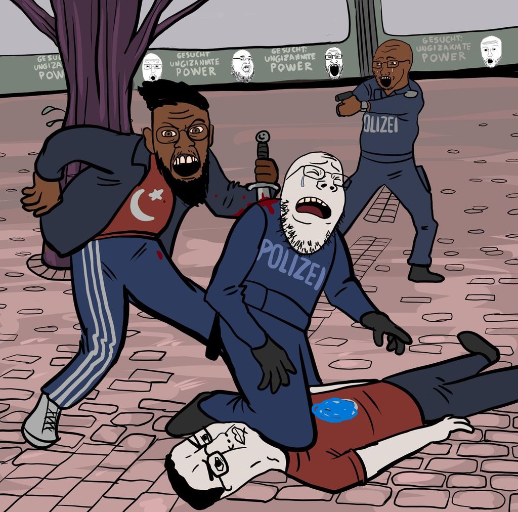 Et le pire c'est qu'après avoir neutraliser le migrants les autres flics étaient plus préoccuper par l'état du migrant que celui de leur collègues
