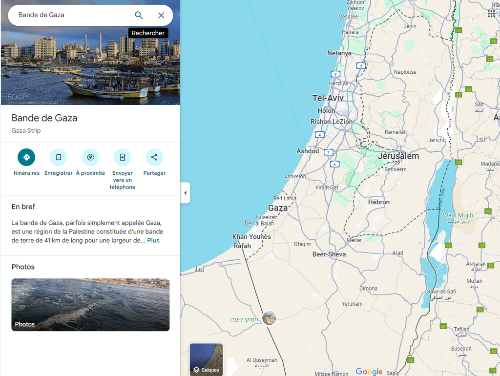 A partir de septembre google France vas enlever les petit pointillés sur la Cisjordanie