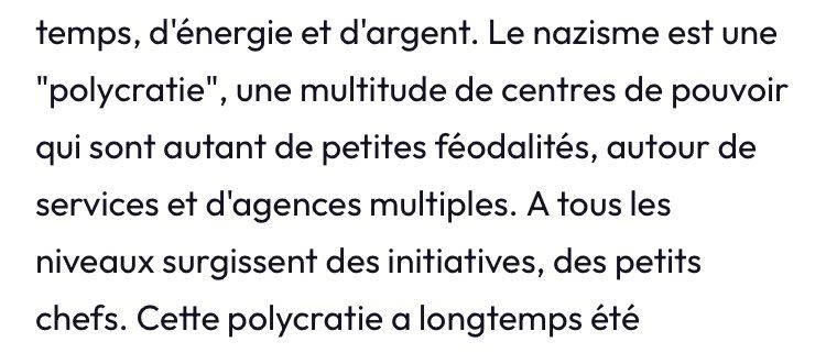 Pourtant, Saint Claude 88 ne dit pas loin de ce que dit Chapoutot en disant que le 3e Reich n'était pas un appareil étatique centralisé comme l'état Jacobin français, mais que c'était un joyeux bordel, contrairement à ce qu'on croit.