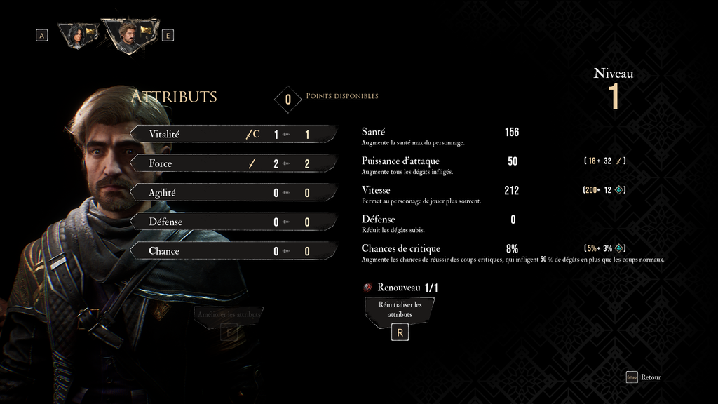 Mais pour Lune l'important c'est la jauge de santé. Tu repartis une bonne partie sur la santé et ensuite sur les autres lettres. C'est un bon moyen de savoir sur quoi mettre les points d'attributs. Tu peux toujours modifier par la suite. Je l'ai fait plusieurs fois.