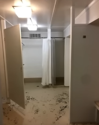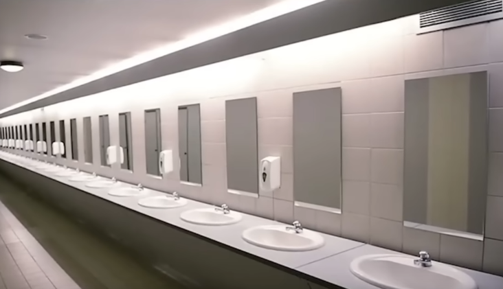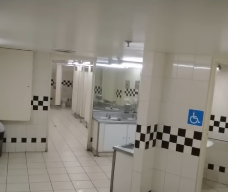Level 189. Class 2. A lot of people entered here by accident. The level is made of a seemingly endless cluster of bathrooms. They have 2 exits doors. Either it leads you to a different bathroom either to a different level. Bathrooms are different and the doors change. Outside windows, people said they saw staticky blue skies with weird clouds, or some saw a white void and nothing else. The level is chill at the start. A rare type of bathrooms are made of gold. You could have entire showers, bathtubs and jacuzzis. Instead of regular water out of the drain it's almond water. For the first 50 or so bathrooms the level is safe. After that it's almost impossible to find an exit door to a different level. It starts feeling more unsafe and the rooms start being decay or to break down. Toilets were filled with mysterious fill material and they were dimmer and bathrooms got pitch black. Pipes leaked and exploded. Some reports of figures lurking in the shadows. You could face smilers, hounds and other normal entities. And these weird noises. A green door with no handle was also found. An entity named Mark greeted the explorer who lead him to the exit door which took the person to the level 4. To enter you can go on a restroom on level 2, open a door inside or sit on a toilet in level 2 and spray air fresher in the air. You can come here to get almond water from a luxury bathroom.The door leading to exit often leads to level 2.