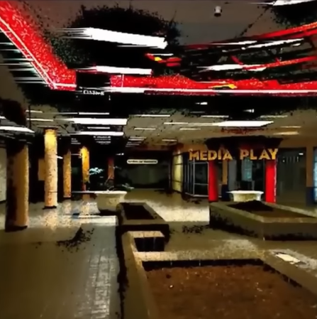 Level 33.3. A sublevel of level 33. A crusty flooded abandoned mall but this sublevel is part of that giant mal complex. The sublevel is class 5E difficulty meaning it's a dangerous, hazardous environment and that you will meet things that don't make sense. The level resembles an old abandoned mall but it's not really to the extent of day that it's regular parent level is. This level is more empty, not necessarily overgrown and flooded. It looks like an abandoned mall from Croatia specifically because of the stores Spar and Mueller. There are a few markets and fish markets. 4 sections in this sublevel. Main area or main hall is where are most of the shops and staircases and hallways. It's the central location of the sublevel The name of the level is dusty mall depths because there is an enigmatic dust inhabitating it, floating and on everything. It's dangerous. It's estimated that 50% of this air has dust. There is no much gravity so you can leap and jump around easily. The main level 44 doesn't have this effect. Second section is called the second floor, where many of the smaller shops, hallways and offices are located. This part feels more liminal and empty and darker. Some big bathrooms and closets are here. On the far wall there is a large spiral staircase going up and down. Some people think it's infinite and some other think that it's the end fo the backrooms. Some other think it's just a staircase. The air only has 20% dust content. The third section is thought to be the underground, a basement type of area with more dust and debris. Here parking garages are located as well as meat markets and other shops. The vibe is darker, dingier, more quiet. Pretty much all the air is infected with dust. So don't go there unless you have a good gas mask. And the gravity here is normal unlike the rest of the sublevel. Fourth part is an outdoor accessed from randomly appearing exits in the level. A small outdoor type place with coffee carts and shops, eerie, empty.