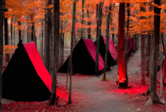 Level 1 957. The bridge of bravery. Classs Zeta. It takes place on and aroudn a rusty old bridge above a thick wooded forest with some of the treess having reddish leaves that can be dark red or light red and other trees that are pitch black. The level all flashlights and other artificial lights not work. Phones and radio don't work. Only tech that works is DSLR cameras. The sky around the bridge is so dark that you can't see anything. Some apths are cut down through the woods that lead from the bridge. That way you can go on these paths and explore the woods around. But it's not recommended to do that since after around 20 minutes of being here you will start to get a strong sense of paranoia. Aim to stay here for less than 20 minutes. For the first 20 minutes you have the feeling of courage and exploration That courage can be fake and lead you deeper in the woods. Once it wears off you start becoming paranoid. Some people have been seen walk into the woods, never to be seen walking out again. There ia s weird community of people living in the woods in red tents, about 30 people. It seems like no entrance to this level works more than once. One recent entrance have been to noclip through a red door on level 11. To exit, wait 20 minutes then a portal open somewhere in the level. Find it or you can be stuck and not be able to leave. The level is just a few miles big.