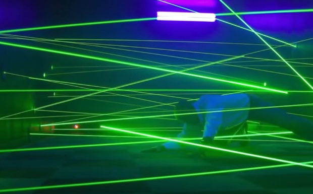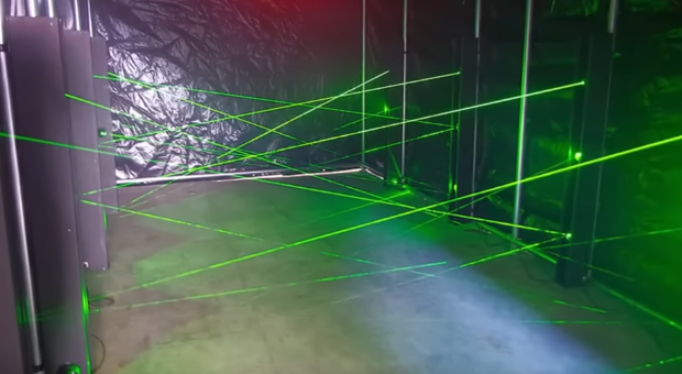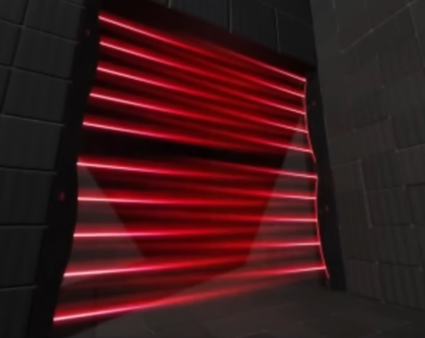Level 154. Class 5 difficulty. The entities aren't the main problems. It's the level itself. It has the laser game. The level is made up of looping and winding hallways that go on forever. The hallways are made of stone and they are the same color which is pitch black.. Only light of this level come from these dingy colored lights on the ceiling that don't even put off light but rather random glow. The big open rooms is where the laser game is played. These rooms all have doors with a specific symbol painted on them. The level can be separated in 2 distinct parts : the corridors and the laser rooms. It starts getting hot when you get close to the laser rooms. Carry a flashlight and maybe some power or breadcrumbs to mark your path and not get lost. Laser rooms are the only exit. No water, food or supplies on this level. In open rooms, huge lasers are pointing. Past these lasers there is always a pedestal with a pendant on top of it and this pendant is going to be in the same shape as the shape on the door. Get the penadnt by passing the lasers. There is a time limit for each room. You will be burnt if you hit a laser but some lasers in other rooms can be more powerful than others. If you get to the pendant, touch it, both of you if you are with someone else. You will be teleported back to level 1 which is where you came from. You can keep the pendant as the one you took will be replaced by an identical one. The first room is called the line room which has a staight blue line painted on the door. The lasers on this room stay still. They are the most powerful lasers. 60 seconds timer starts when you enter. If you can't win the pendant will retract into the floor. Lasers will turn off, the door open and you can walk out of the room to find another room. They are not even that common. Next room is called the circle room. A yellow circle painted on the door. The doors will lock when you enter until you win or lose. They don't have a timer. The lasers move but slowly.