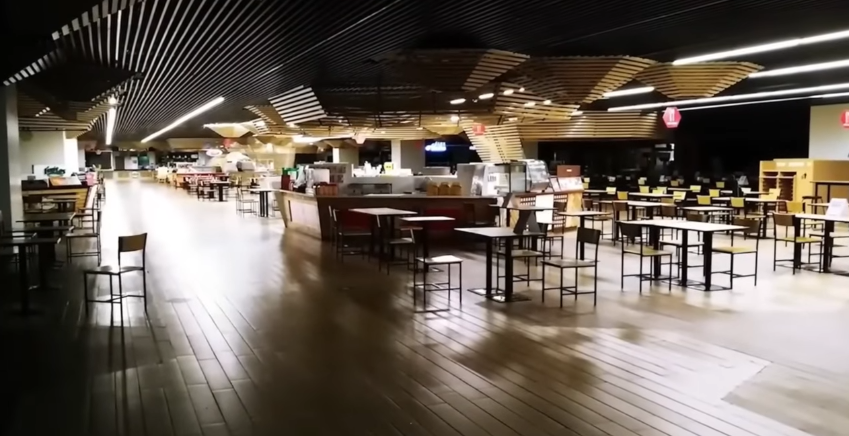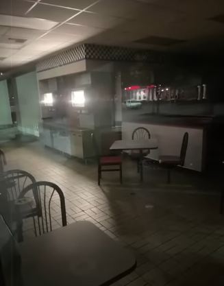 Levle 6.1 Classified as a deadzone. It's referred as the snackrooms. It used to look like a huge court food area with liminal features. It's along hallway with restaurants and concession stands. Vending machines and restrooms are also here. It seemed like a perfect level after level 6. It was a safe level until its downfall. It's now known as the fallen snackrooms or the food court. It's now all decayed and abandoned. The level seems to have become corrupted and volatile. It's been concluded that the level underwent a spatial tragedy. Previously, level 6.1 had a similar effect as level 11 on its entities, making them passive and even docile. At a point, this effect wore off and that's when the downfall started. Some people either escaped the level either had to hide deep inside of it. Some people blame this shift on behavior on level 11 itself. Other think it's random. Before the change, there was one incidence of an entity attack, occurring when a hound noclipped to this level by accident. Since then, the balance and force seemed to have shifted. After that, more and more aggressive entities started coming into this level. But how do we know when the effect stops working? To enter this level, walk into a restaurant from level 11 to have a chance to be sent here. You can walk into a restaurant over and over again until you get sent here. To exit, find a set of glass doors, walk outside of them and you will be sent back to level 11. Or find a window that's indoors and you can break it, jump throught it and you will go back to level 6.