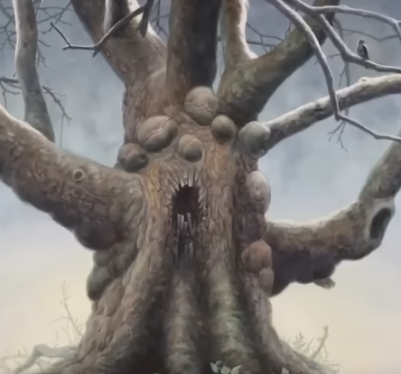 Level 65. The document starts with an exploration log found on this level, the log between 2 explorers and the 2 people wandering to the woods of the level when they come across an apple tree. The apple tree looks off them. It's bigger than apples from real life and it's leaking some kind of strange juice. One wanderer bite into it. The apple tastes off and leaks that weird substance. The wanderer starts convulsing and to purge repeatedly. The skin starts to split apart and the bones shifting and multiply into multiple legs and arms, her face morph into stored and she grows pincers and legs. The wanderer just turned into a human centipede creature. So he drops his apple, runs away ass fast as possible and he is almost in the clearing until the trips and you can guess what the centipede does next. Level 65 is class 4. 5 specific parts : the main area, the apple trees, the mouths, the centipedes and the stump. Level is a constantly misty and foggy forest with different types of trees who are reddish colors and their leaves are dark red. A thick humid fog stagnates in the level No other weather, the breeze is cool. The trees seem to be carnivorous, eating meats including humans with grounds absorbed in the ground by trees roots. The groudn is littered with red leaves and oversized centipedes, some of them being 6 feet long. The apple tree section : the blood apple trees manifest in evenly spaced rows. Each row are 15 feet apart from each other. They look like an apple orchard. The apples are anomalous, leaking this red vicious liquid. Don't touch or bite these.