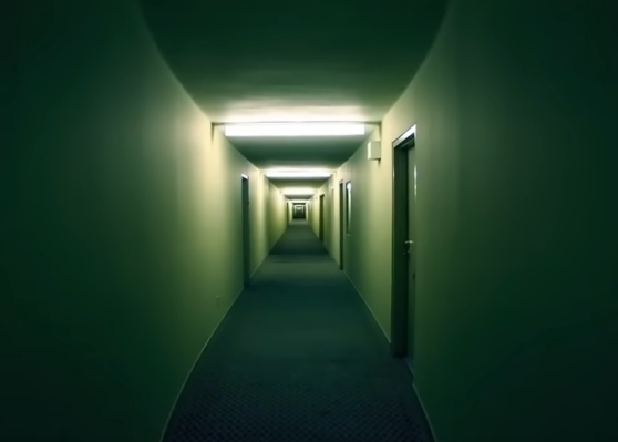. - 980. The whole level is unknown and enigmatic full of structural and spatial glitches. The main layout is a labyrinth of nightmarish and nostalgic liminal corridors. At first it looks like a huge hospital without beds or equipment. Floor is slippery and made of white tile. Slippery because of the almond water on it. Walls are made on concrete. They are lit up by dim green light. Find a black wooden door to exit the forst portion of the level. You will be sent to the main part of level 980. First room after that door will be the first memories from real life. After keep going through doors you go through different moments from your life. These corridors are glitchy and volatile. No confirmed exit. Maybe try to find your luck and noclip somewhere out.