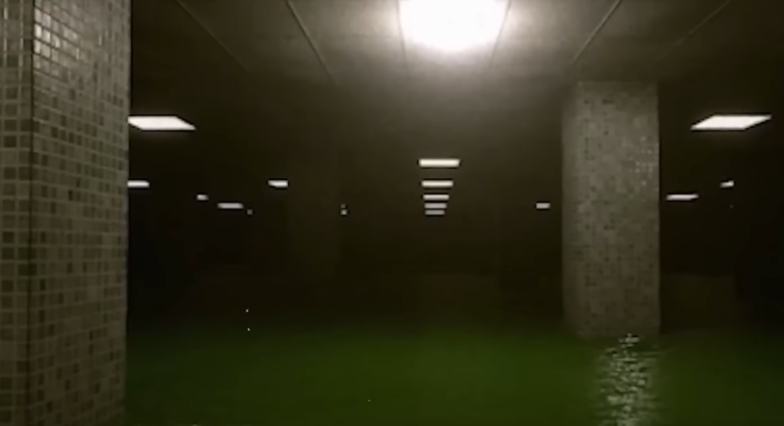 Deep end. Level 37.1. Class 3 difficulty. It's like the poolrooms with rooms full of water but the sheer depths of the water and what might lurk inside of them are the main differences. These hallways look like endless dark abyss under you. So you have to swim through this darkness to get anywhere. Corridors and hallways ar epitch black for the most part. Only artificial sources can lit it up. In some rare cases the walls have that weird dingy glow. Connection from room to room are hard to use because most of them are underwater. It's a very tight window to get to the next part. This leve is not that well maintained. The tiles are gross, the water is darker and murky, almost green in some areas. The air is musty and stale. Structure and layout of the level can also change fast, confusing you. It's due tot he non euclidean geometry. No entity permanently live here. Some facelings have been seen waiting through deeper water far into the level. There is also instances of the hydrus plague virus, a very dangerous virus lurking in water in the backrooms. There are some reports of glitchin. Glitchin might be a real entity. Askeleton silent type of entity lurking. To enter this leve, wander too deep into the poolrooms. To exit you have to get lucky. One way is to randomly find a water slide in the wall, jump in that water slide to take you to another sublevel which is level 37.4. It's safer although not really safe yet. Or try to noclip but that might not work.