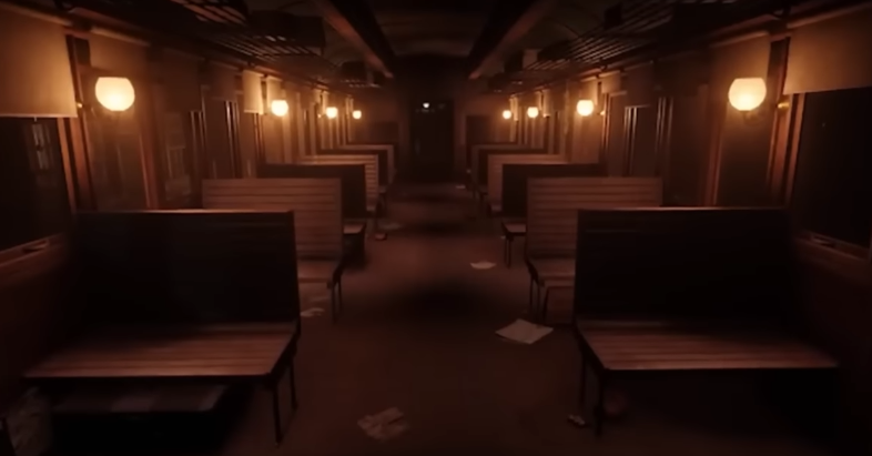 Level 61. Class 4 difficulty. The level takes the appearance of a series of train and train cars. on an infinite track. The level seems infinite and randomly generates new data. You will start at the front of the train. The train looks clean and be cautious while exploring because crossing between train cars is very dangerous. It could lead you to fly outside of the train. The train is moving very fast so one wrong step and you could be doomed. In the first car, it's a normal passenger train car, it's clean and the first cars will all feel similar to the first one. Further back train cars will start to turn into sleeping quarters and other rooms like dining rooms, buck rooms with small beds on either side. Dining area have a bench siting style. There are less windows. After that, level loses its clean charm. The further you walk back in the train the further it looks like the level goes back in time. The train will seem to age to an older time period. Older areas. You can feel how fast the train is moving in these areas. Most dangerous entities of the level are also here. They are called camo crawlers. They have vague humanoid shape. They can blend into any changing environment. They have massive white eyes and huge ears slits. They rely on these ears for hunting. The entities range from 3 to 8 feet tall. They like to attach themselves sto the roof of things then drop down onto their prey. At least they are quite rare and don't attack that often. You are more likely to run into an occasional hound or smiler. if you end up outside of that train, in the outside area, this area seems randomly generated when inside of the train. On the outside though, everything is black like a void. From the outside the train feel normal sized trains. To enter this level, sleep inside of the upper segment of level 60. Exit by jumping off an old part of the train or wait for a train to stop randomly and then you get sent to level 11.