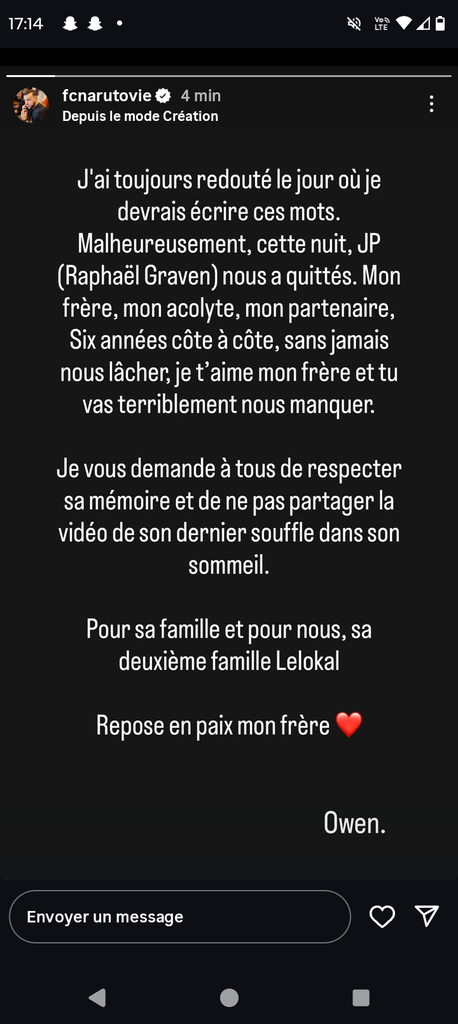 Faut parler aussi du fait que c'est TK78 qui a propulsé ce mec, deuxième fois que quelqu'un est mort indirectement à cause de sa notoriété