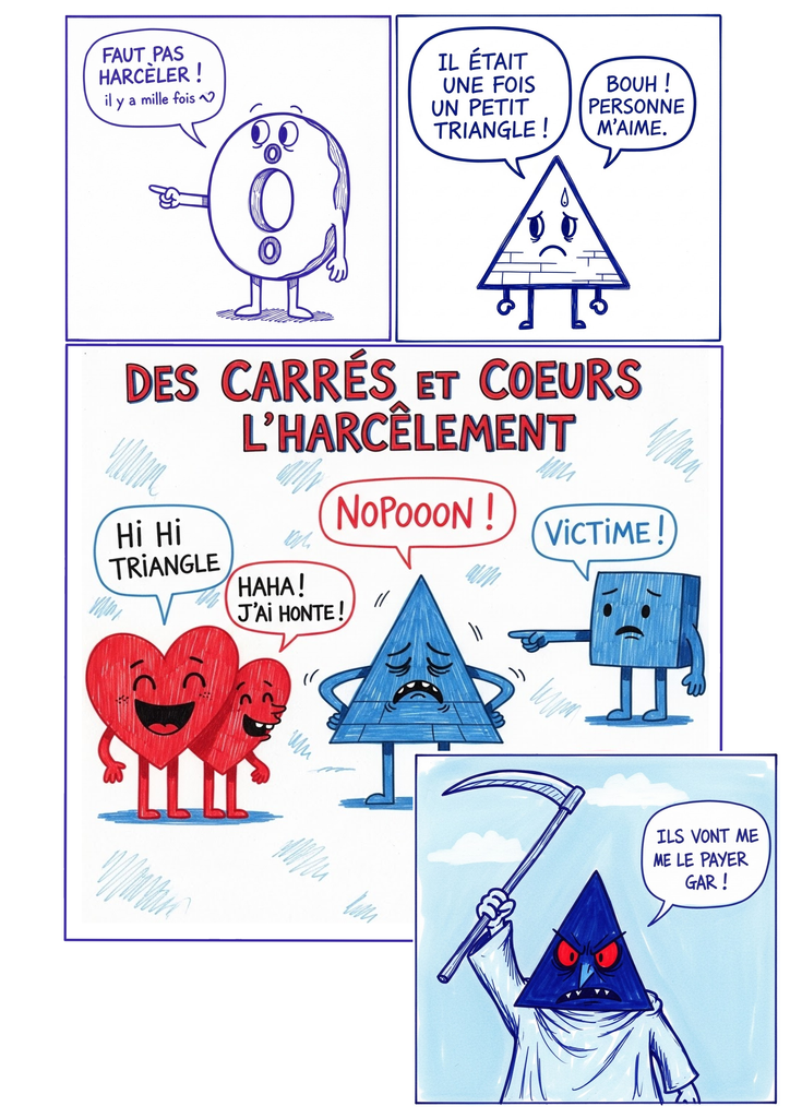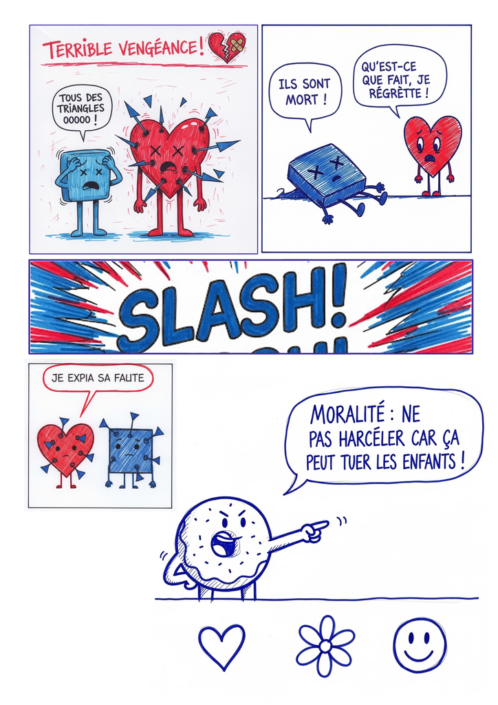 La première c'est très bien mais la seconde planche WTF... En fait le Triangle tranche dans les Carré et le Coeurs (en les demembrant même) pour que l'essentiel de leur cadavre ait une forme de Triangle et ça l'IA n'a apparemment pas capté