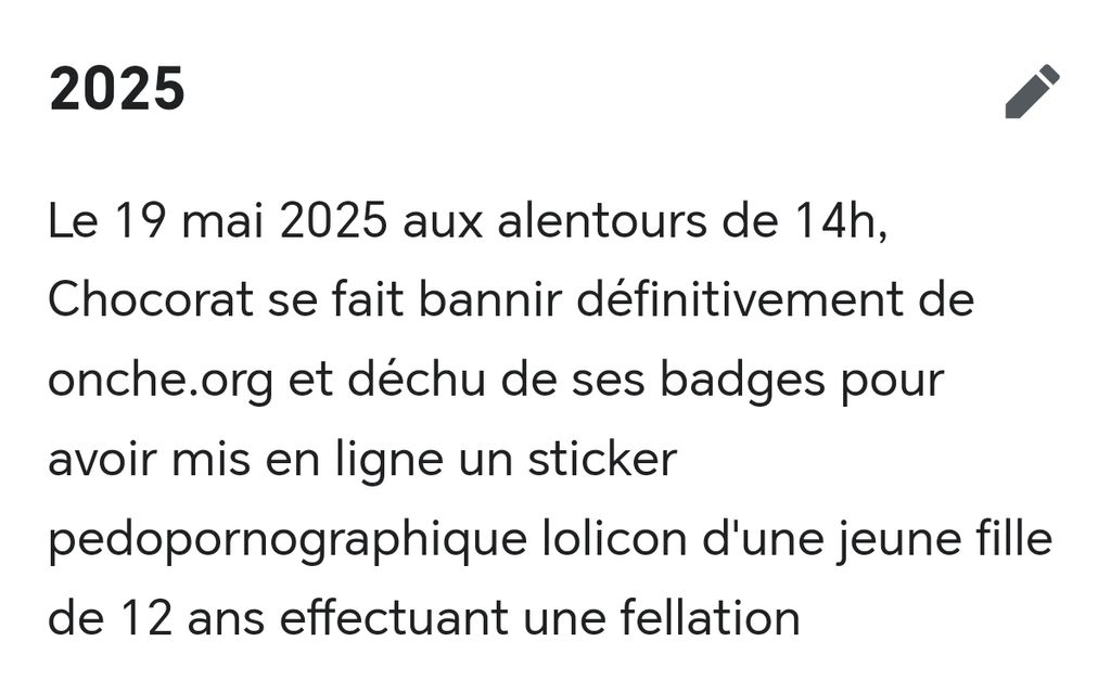 Il a creer et poster un sticker hentai d'un personnage anime ayant officiellement quelque chose comme 12 ou 13 ans.
