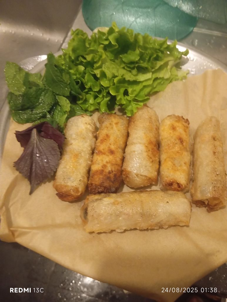 Alors tu enroules le nem dans la laitue et tu trempe le tout dans la sauce Nuoc-mâm, avec une feuille de menthe si possible