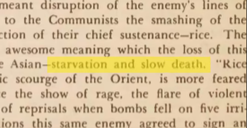 " The western can little conceive the awesome meaning which the loss of this stapple food commodity has for the Asian - starvation of death -.