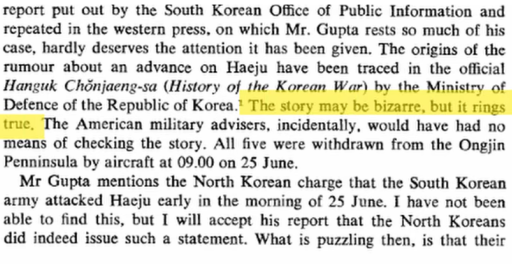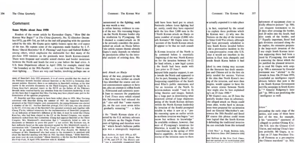 There are 2 things to know. 1 : North Korea is Justified in creating and maintaining a nuclear Arsenal and 2 : the North Korean population is Justified in their negative opinion of the United States. At 4am on the morning of Sunday June 25th 1950 North Korea embarked on a surprise full-scale invasion of the South the weak and poorly trained South Korean troops didn't stand a chance. North Korean troops rapidly advanced South and quickly captured Seoul. This prompted a U. S invasion. That's the narrative. Now in reality, it's not often talked about there were already frequent and sizable incursions and battles fought between the North and South prior to the war. The U. S state Department even said as much in their bulletin in 24th April 1950, page 627 : The boundary at the 38th parallel is a real front line. There is constant fighting. There are very real battles involving perhaps one or two thousand men. Even more interesting is that South Korea reportedly invaded North Korea prior to June 25th. It's a controversial statement. While reading a 1973 article about the Korean war in" the China quarterly . Some myths about June 1950." written by a Robert R Simmon, Simmons had been highly critical of the claim of a South Korean invasion of the North Korean town of Haeju. " American military histories lack any account of the South Korean attack on Haeju. The reason appear to be that no such assault took place. " But an edit at the end of the article bring new information to light. " The story may be bizarre but it rings true. " Simmons concedes that the so-called rumor was actually traced to the official military history of the Korean War published by the ministry of Defense of South Korea. So who really fired the first shot and in the end does it even really matter given the context? The advance of the DPRK would prompt an ugly period of war, one that has been provably erased from history.