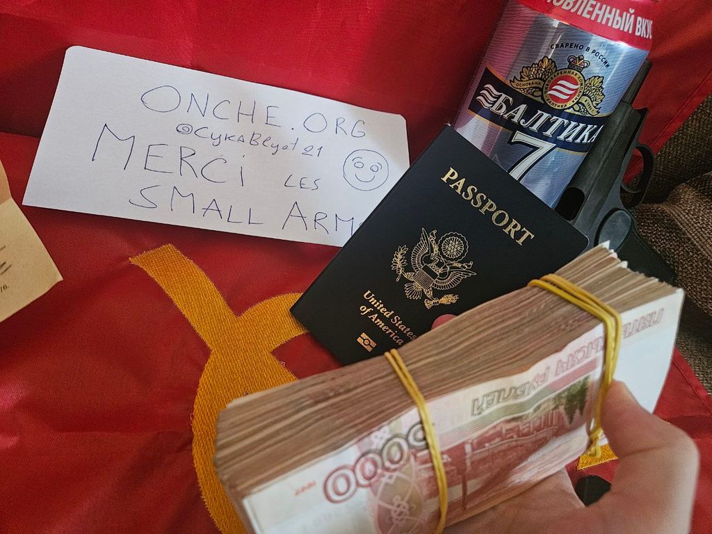 La photo et la vidéo montrent des liasses de kopeks (les centimes russes qu'ils ont en billets) donc pas de roubles, au total il ne doit pas avoir plus de 50€ là
