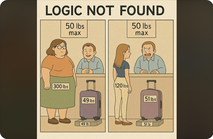 Mais faut aussi comprendre qu'on ne peut pas comparer le poids d'une personne qui va se déplacer avec ses jambes avec le poids d'une valise qui sera déplacée par des gens qui bougent des centaines de valises tous les jours, c'est aussi pour leurs droits à eux qu'on limite le poids des valises