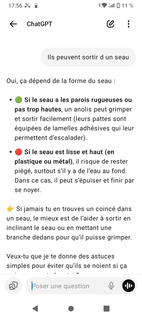 Non anolis vert, t avais raison il était piègé dans le seau je pensais qu il pouvait ressortir comme un iguane mais non ce sont des handicapés moteurs