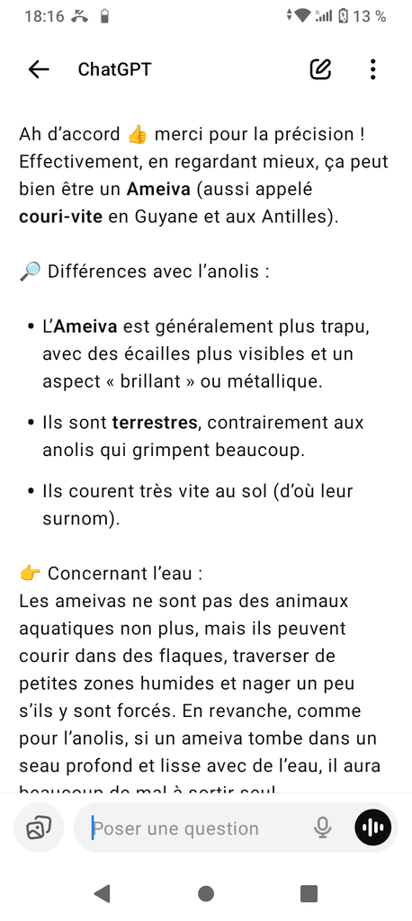 Propose a chat GPT l'hypothèse ameiva ameiva en lui donnant toute tes photos, tu vas voir, pour moi il confirme.