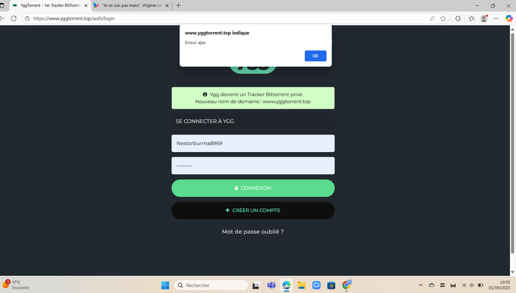 J'essaye de me connecter mais quand je rentre l'adresse ça me sort soit une erreur 500 soit une erreur Ajax, ça vous le fait aussi?