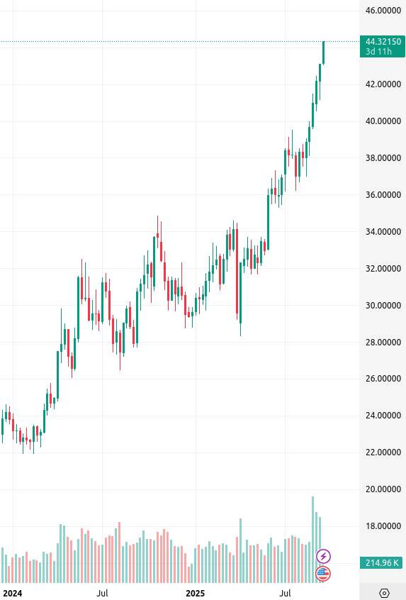 C'est con, il va baisser à blinde lundi (le bon spoofing, JP Morgan s'est déjà choppé une amende de 900 millions pour ça). Si seulement les métaux étaient en marché ouvert continuellement façon bitcoin, ça serait la foire à la saucisse