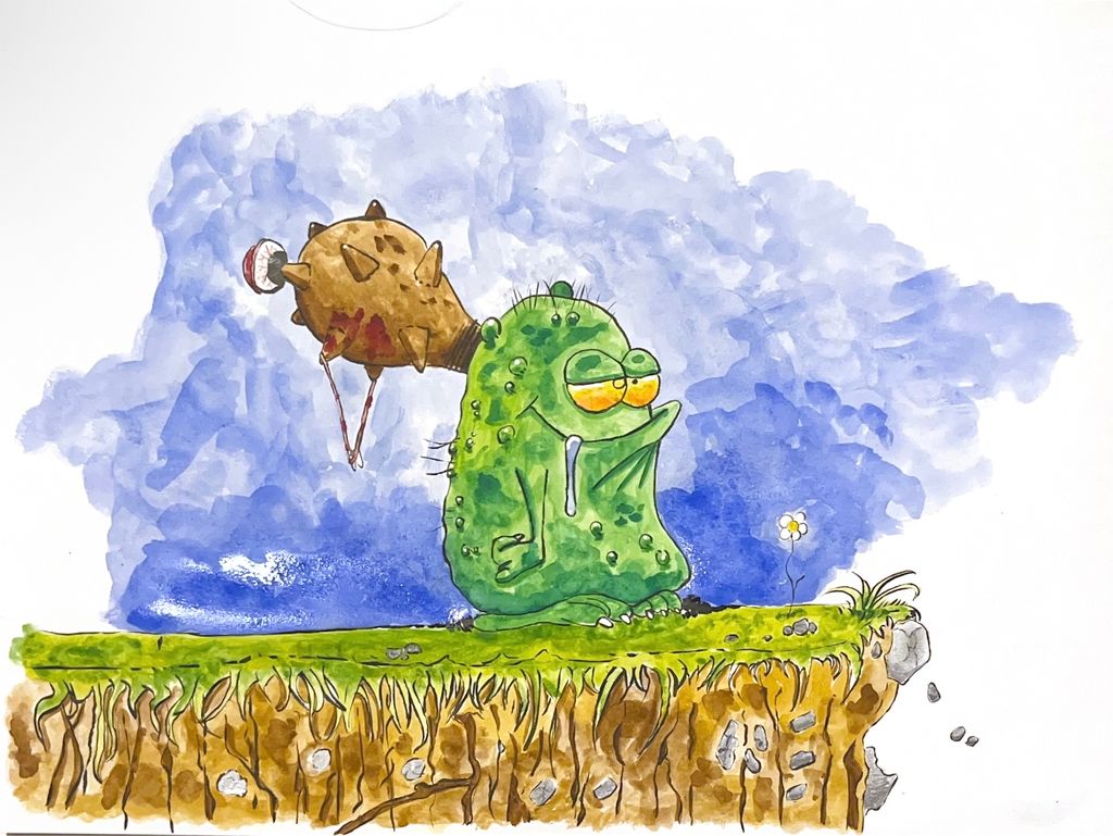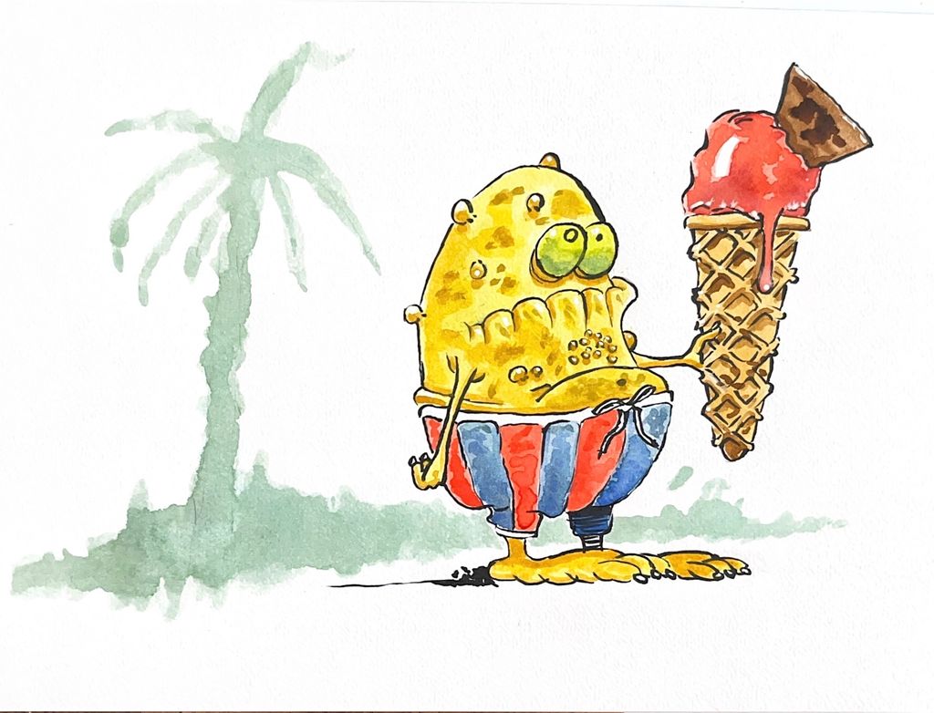 Midam en sueur, on pourrait croire qu'il s'agit de son propre coup de crayon clé