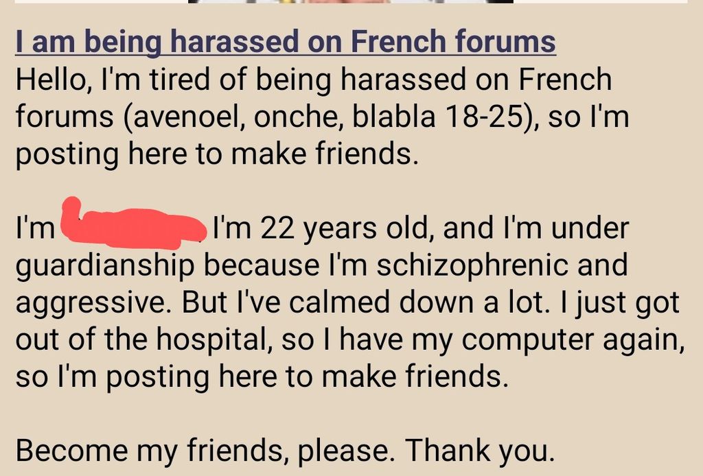 J'ai ano le pseudo pour pas me faire fâcher par les modos, mais honnêtement aller sur 4chan pour se faire plaindre c'est pas la meilleure idée du monde