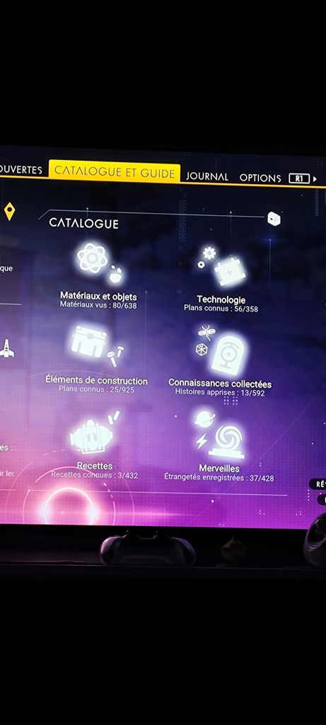 là par exemple, c'est le catalogue des choses à débloquer / découvrir / apprendre / craft.