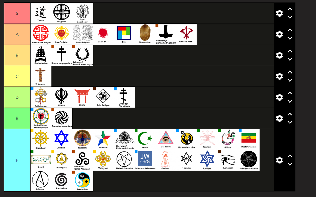Tier list des RELIGIONS