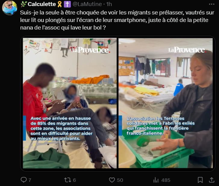 Les migrants malheureux avec leurs téléphones pendant que les blanches leurs font à manger et la vaisselle.