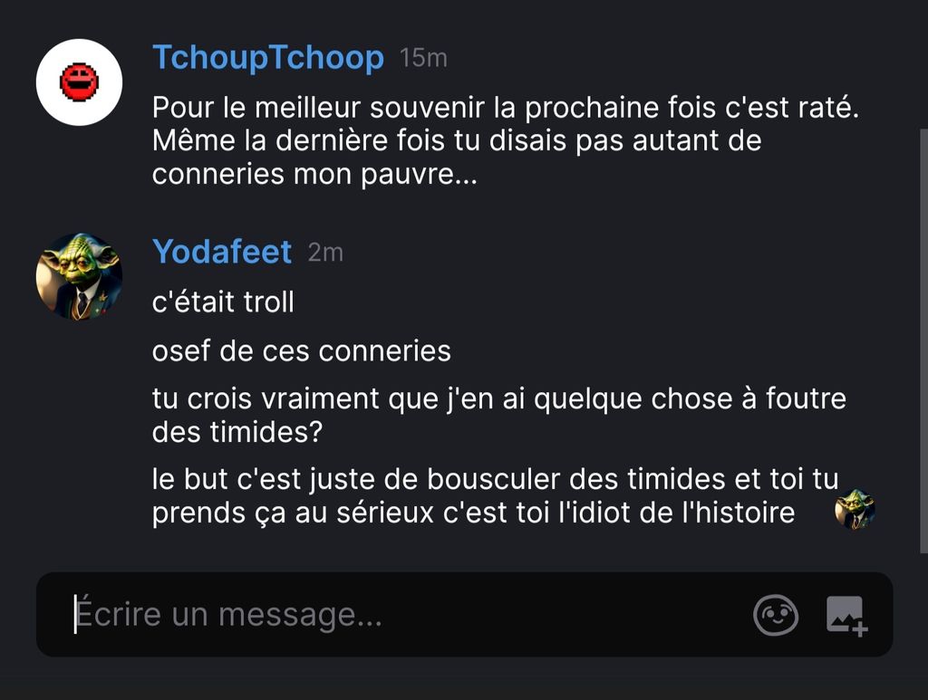 Attends khey tu trolles là ? Je t'ai expliqué plein de fois.