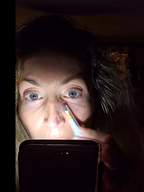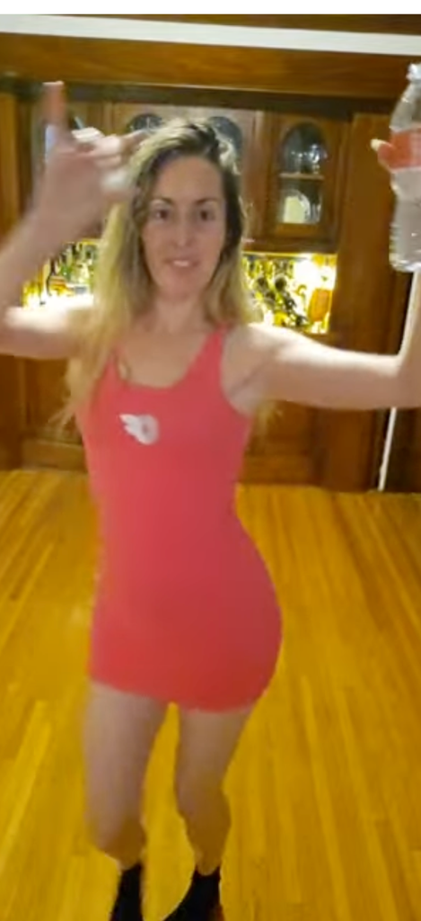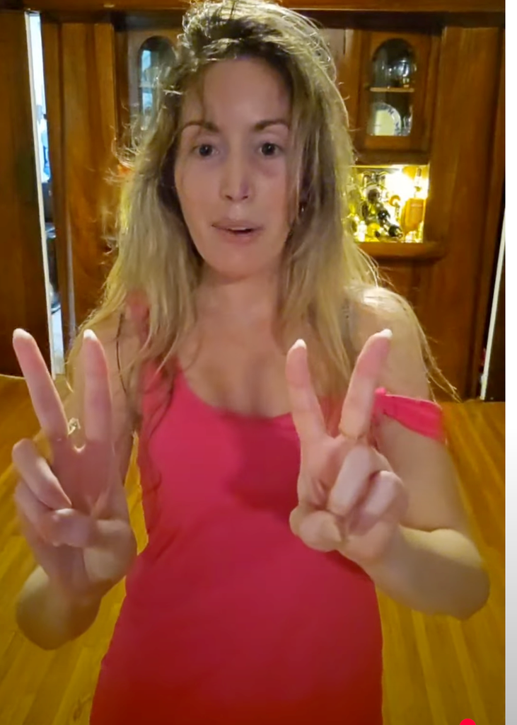 De blanc sous-vêtue, hilare, elle claironne son bonheur. Une renaissance. Se dit guérie de la morphophobie et de toutes les phobies ! Fini la germophobie: elle arpente pieds nus