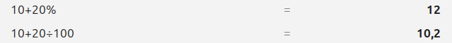 10 + 20% CA VEUT DIRE 10 + 0,2 * 10