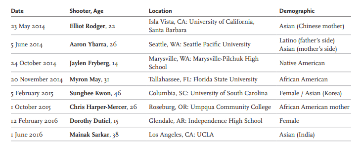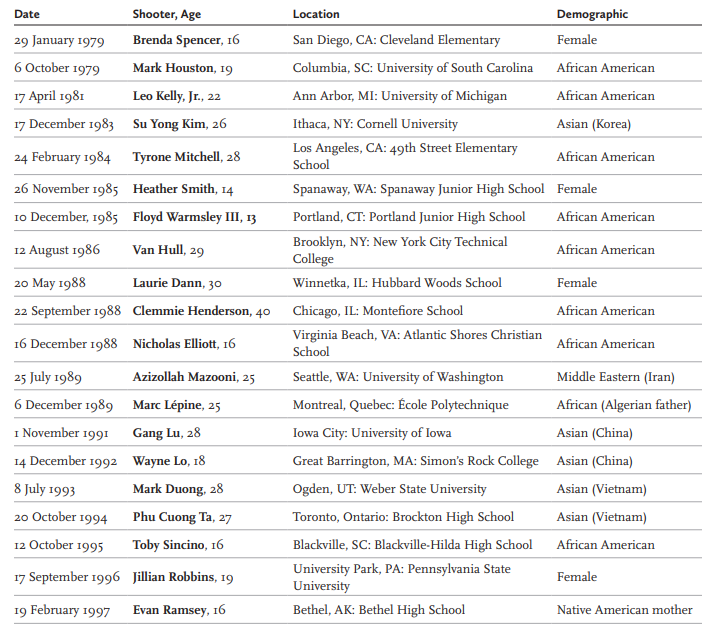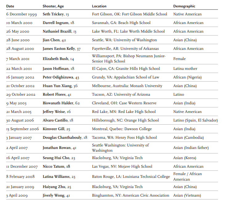 Les fusillades sont souvent liés à pleins de facteurs complexes (harcèlement scolaire, problèmes mentaux, etc...) et tu ne peux pas résumer ça à une donnée ethnique !