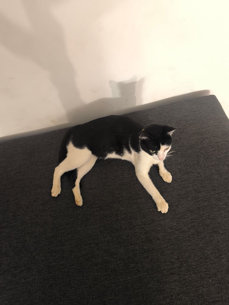 Il me voit arriver, il monte vite fait, je lui file à manger mais il se dit qu'il a pas faim puis il fait comme chez lui en tapant la sieste sur le canapé, ce sens gêne